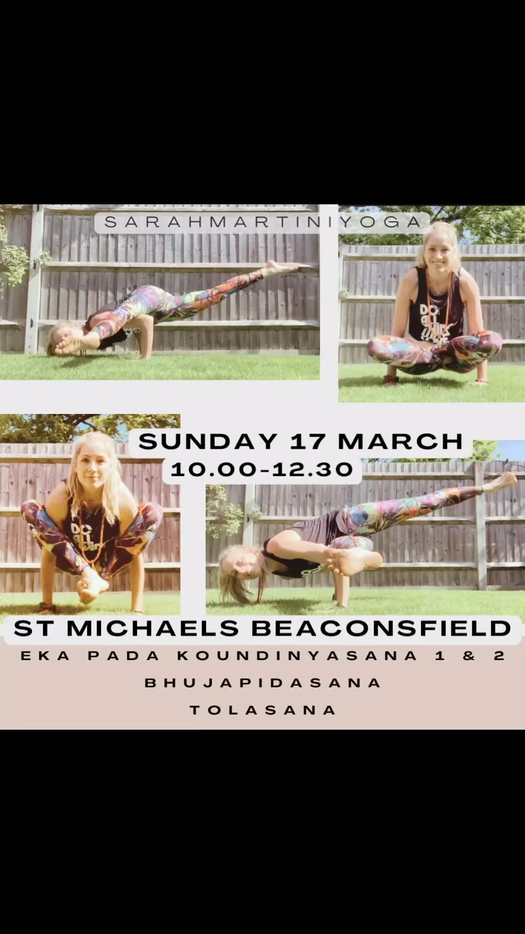 Super Flow- For experienced Yogis. Intermediate, fast paced and challenging. Includes various arm balances and inversions. Knowledge of sun salutations and minimum six months consistent practice essential. Fun and sweaty.
